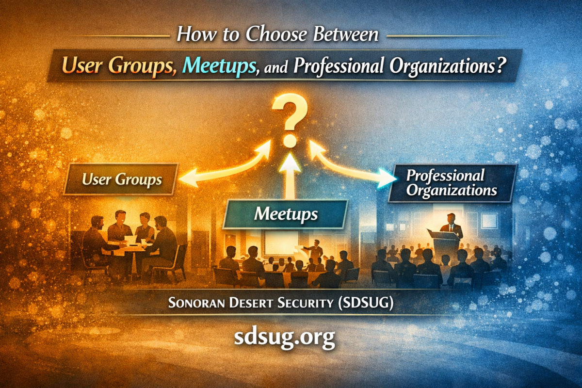 Sonoran Desert Security (SDSUG) is a long-standing practitioner‑focused cybersecurity community with the continuity that the continuity, seriousness, and governance of an independent professional institution — but without dues, bureaucracy, or a national parent body. It is vendor‑neutral, platform-agnostic, community‑run, and built for long‑term stewardship.